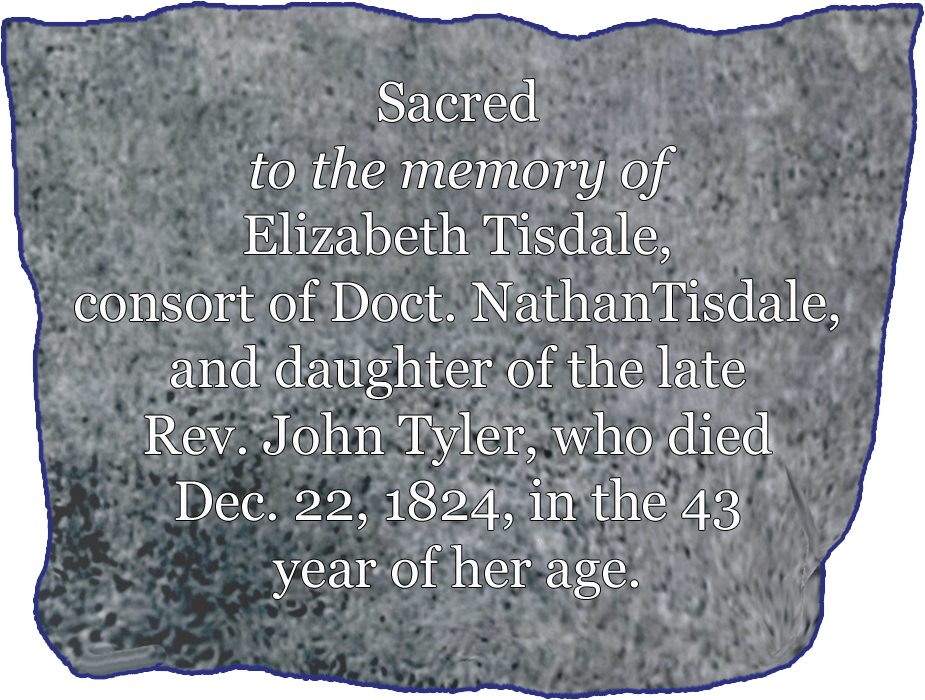 The stone shown here was carved for Dr. Nathan Tisdale (1772-1830) and his wife, Elizabeth Tyler Tisdale. She was the fourth daughter of the beloved rector, Reverend John Tyler.